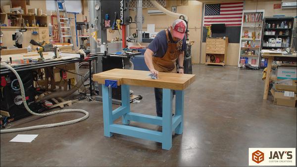 Last week, I made this workbench for my daughter. The top is white oak and the base is poplar. All of the joinery is through mortise and tenon joints. In this video/article I’ll cover the base fit and finish, the vise installation, and applying a good finish for workbenches.