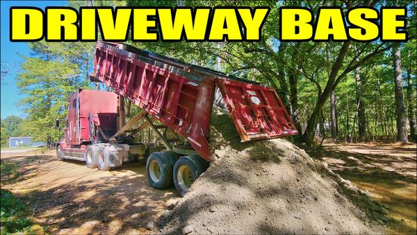 Our driveway is approximately 1300′, depending on where you decide it ends in the clearing. Calculations for a 10′ wide, 1300′ long, and 3″ deep material driveway equal 120 yards. Because this is just a base layer that we will be topping, I was hoping to get at least 100 yards to get a decent base along the entire run. By only having 50 yards available, I had to spread it a bit thin.