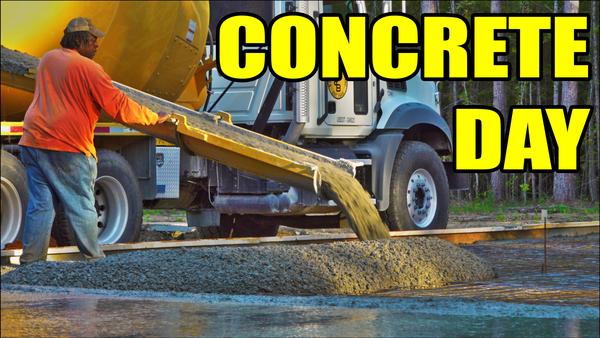 The day for concrete arrived, and it was such a beautiful day. The crew came on a Wednesday to complete the forms, and the concrete was poured and finished the following day. I included one sewer out, one water in, and two 2" conduit stub outs for future expansion in the concrete.