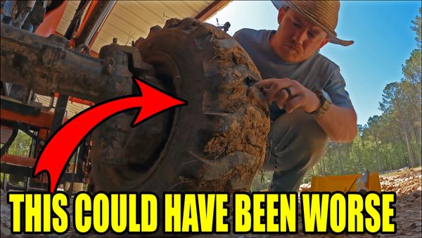 Have you ever heard the sound of air rushing out of an inflated tire? 1 outta 10 stars, would not recommend. I’ve had some slow leaks in the tractor tires for the past year now, but this is my first puncture flat. Filling the tires with ballast fluid and a hole sealant has been on the list for a long time….but so has a lot of other stuff. In the meantime, I’ll keep plugging away at keeping air in