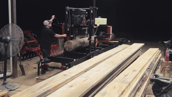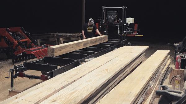 Stocking up on beams to experiment with timber framing. I'm cutting a few 8x8x12 posts, and processing the offcuts as 10' 1x stock.